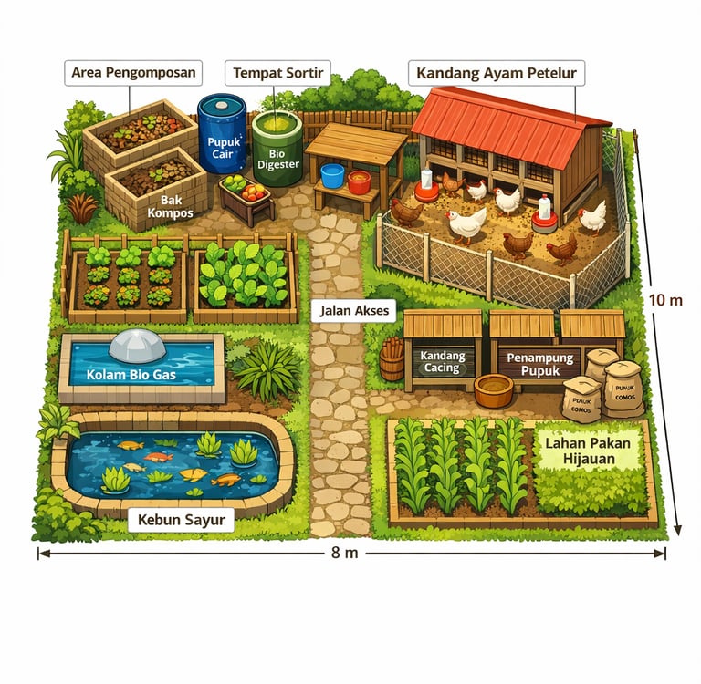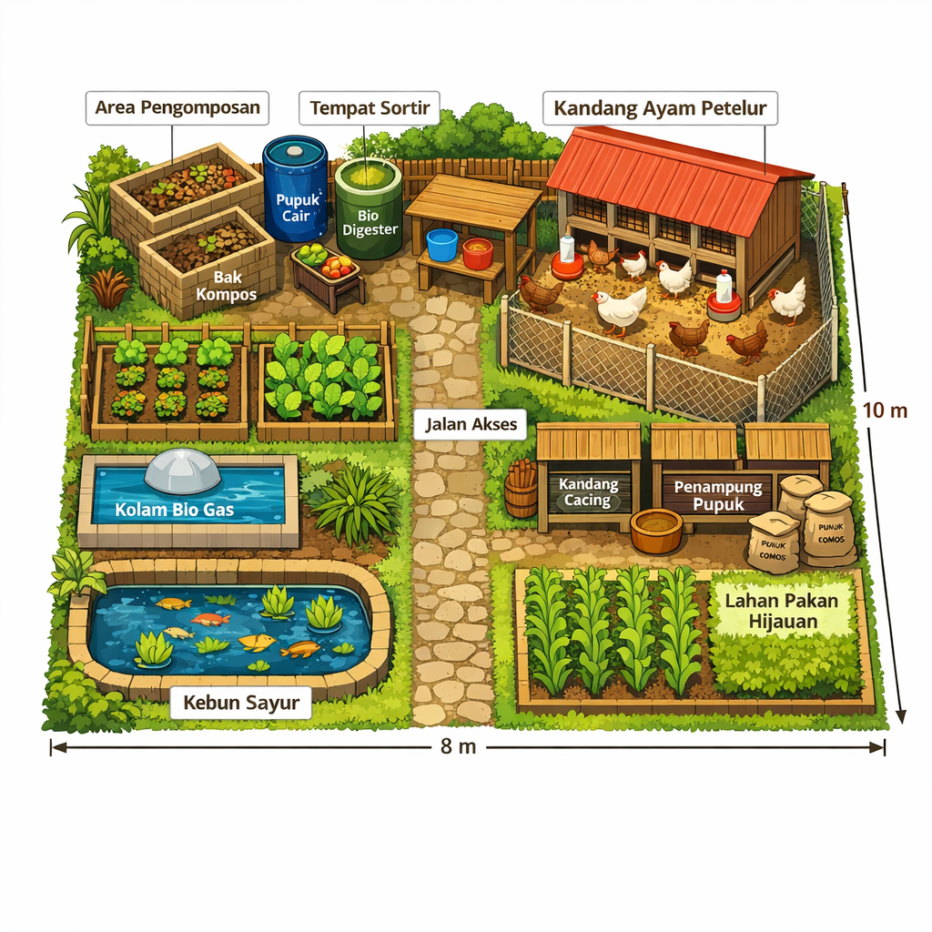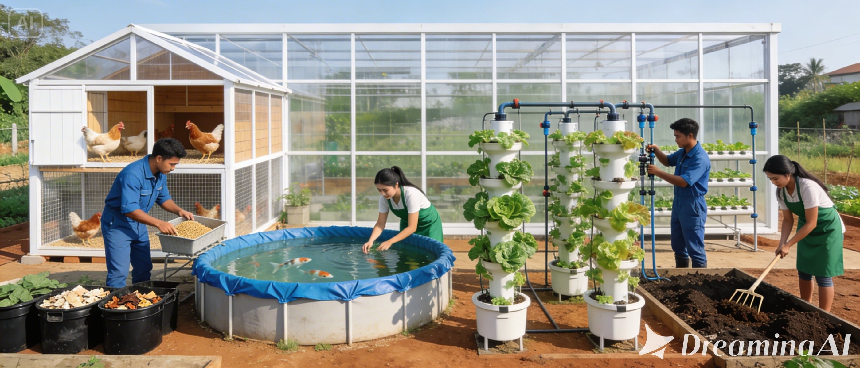 Mengelola limbah jadi kompos, pakan, dan budidaya ikan.